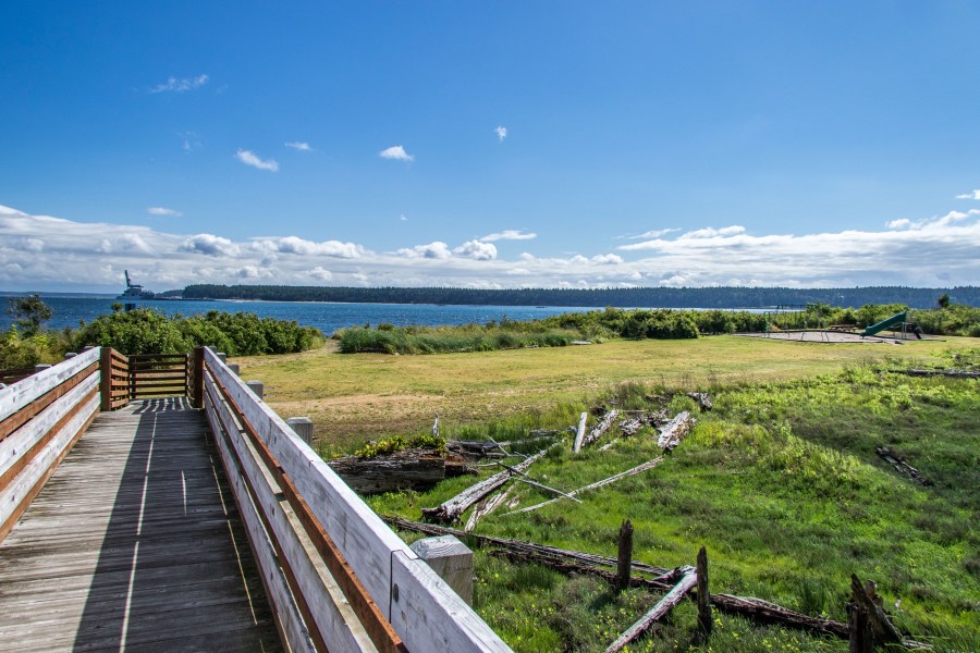 Enjoy effortless resort-style living in Kala Point. This bright well-cared for home offers a spacious SINGLE-LEVEL layout with privacy of an end-unit & 2 car garage! Natural light pours into the living area w/ large picture windows, soaring vaulted ceilings & skylights. Handcrafted woodwork with built-in’s add warmth & Northwest charm. Kitchen offers new SS appliances & custom pass-thru bar perfect for entertaining. Primary bedroom provides en-suite bath, tons of storage & walk-in closet. Without any need for yardwork, the large patio is ready for summer dining or morning coffee overlooking lush landscaping & gorgeous gardens. Soak up this coastal beauty w/ private beach access, peaceful walking trails, tennis courts, gym & swimming pool!
