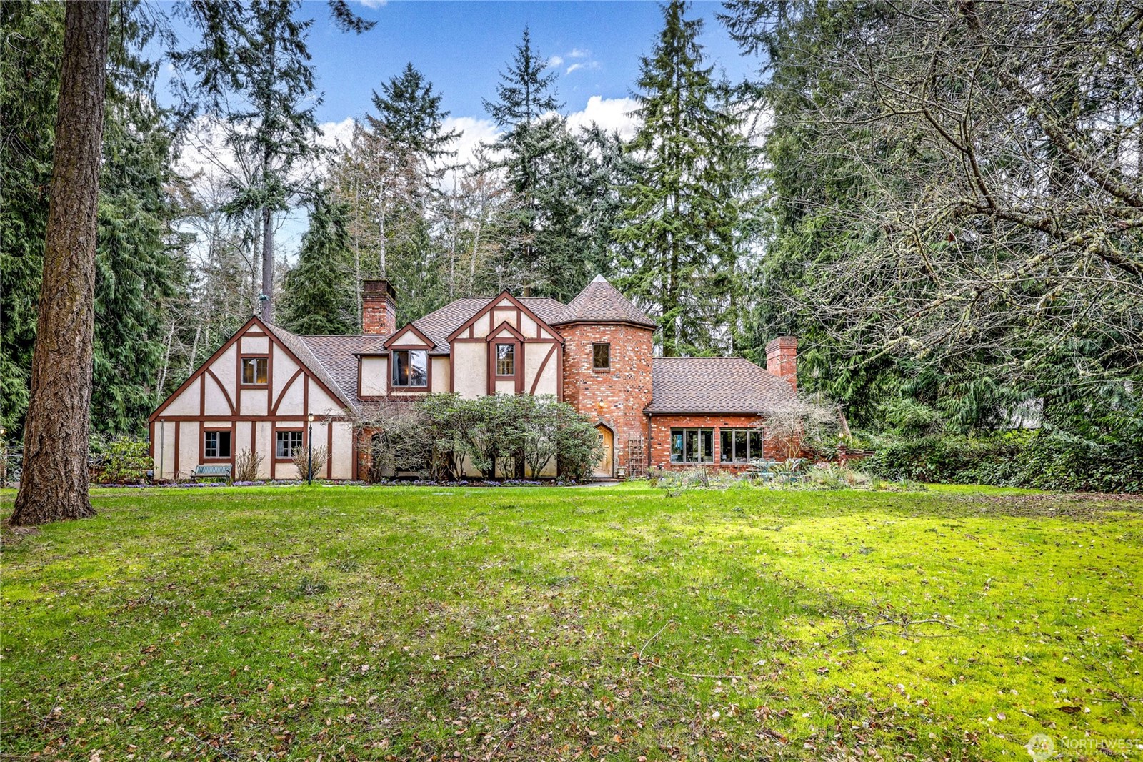 This gracious Tudor home is ready for you. On a large lot, just shy of an acre, this property has space for all things formal and informal and tucked away from the neighbors. Inside the house is a formal living and dining room, library, pool table/bar and huge primary en-suite that includes sitting room and propane fireplace. Bedrooms include jack-and-jill bathroom with built in vanity. It’s private and serene and ready for your touches. Located in Kala Point – easy access to the trails at Fort Townsend State Park, boat launch, clubhouse with pool, private beach access and tennis courts. New septic installed 2024.